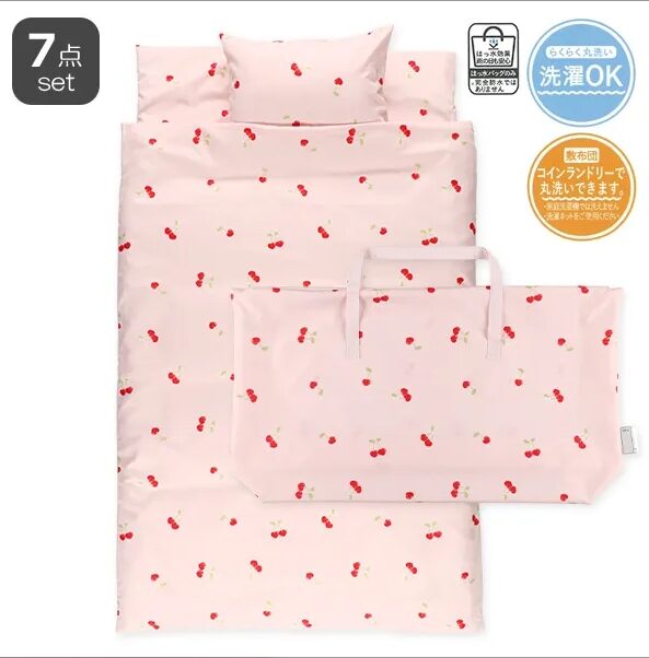 敷布団・掛布団・枕・カバー・バッグが揃う7点セットが6,990円で購入できます。(2026年1月現在)
