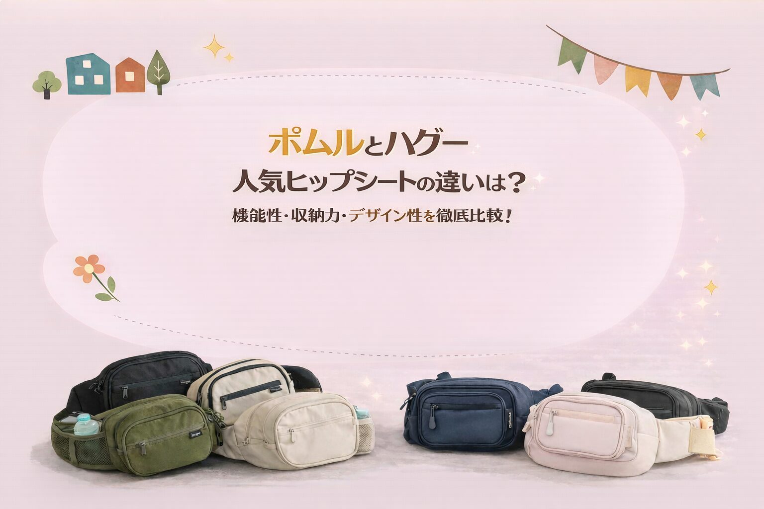 この記事では、「ポムル」と「ハグー」の2つのヒップシートの違いについて機能性・収納力・デザイン性・価格で比較して詳しく解説していきます。